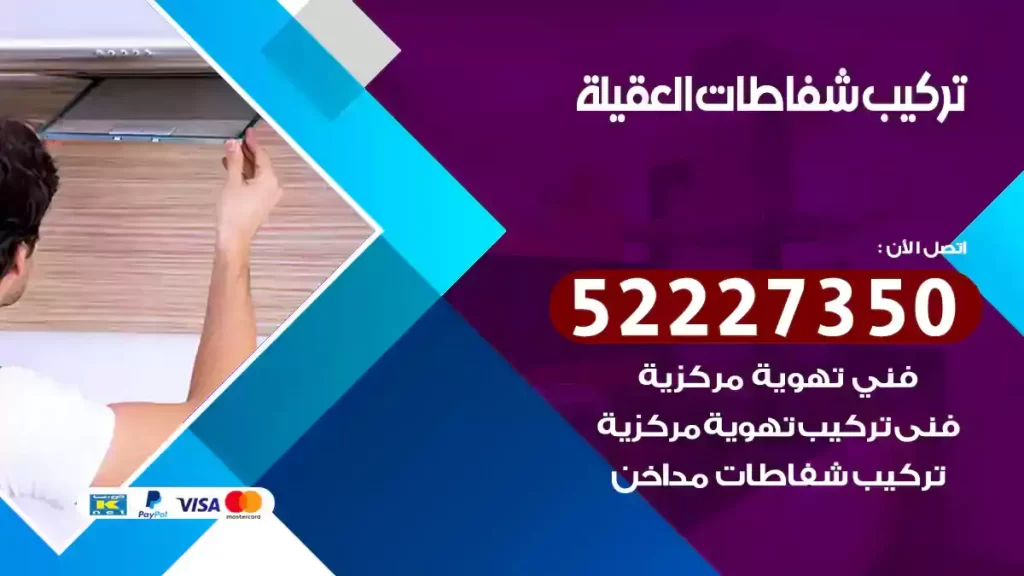 تركيب شفاطات مطابخ العقيلة لدينا خبرة في تركيب شفاطات مطابخ العقيلة لتقوم على شفط الابخرة من المطبخ إلى الخارج، وكافة الروائح الناتجة عن الاطعمة، وتقوم ايضا بالتخلص من الحرارة الزائدة لذلك لا غنى عنه في اي منزل حيث نوفر الكثير من الانواع واشكال مختلفة لتتمكن من اختيار الشفاط الذي يناسب منزلك وسوف نزودك بكافة المعلومات عن هذا الجهاز لتتمكن من التعامل معه بسهولة، فعندما تريد شراء شفاط مطبخ تواصل معنا على الرقم 52227350 لنوفر لك النوع المناسب والملائم للمنزل