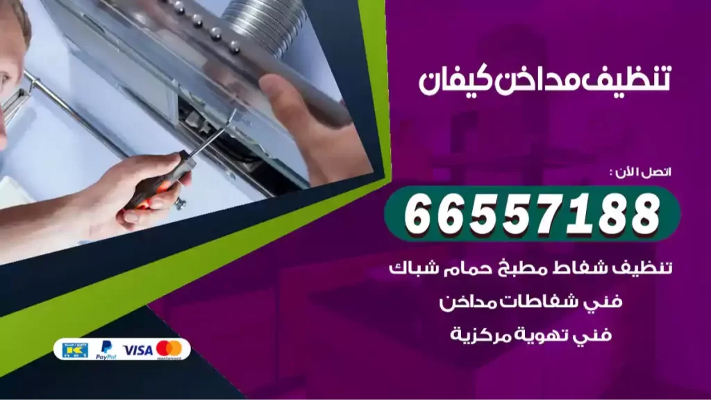 نعمل في شركتنا على تنظيف مداخن كيفان ونعتبر كأفضل شركة تقدم مثل هذه الخدمات لتنظيف المداخن للمطاعم والمستشفيات والفنادق ونعمل على التنظيف العميق للدكات والقنوات الهوائية لنحقق الإذابة العالية للدهون في أصعب الأماكن الداخلية والخارجية للمداخن ومنتهى الحرص والحذر لنحقق السلامة المهنية والأمان العالي.