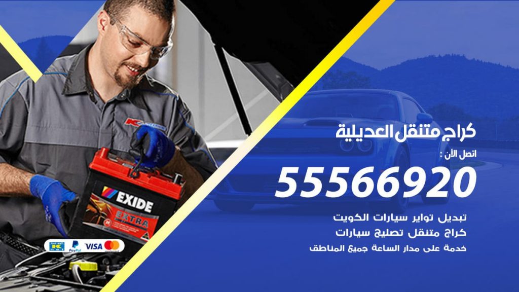 كراج متنقل العديلية احد الخدمات المتنقلة المتواجدة في دولة العديلية الخاصة بالسيارات وهو عبارة عن ورشة متكاملة تتواجد اينما كنت تستطيع ان تستدعيها لاصلاح سيارتك بجوار منزلك او اذا تعرضت لاي من الاعطال اثناء الطريق وتوفر لك كافة الخدمات الكهربية والميكانيكية الخاصة بكافة انواع السيارات الحديثة والقديمة ، للاستعلام وطلب الخدمة يمكنك التواصل هاتفيا كما يمكنكم التواصل ايضا على 69622745